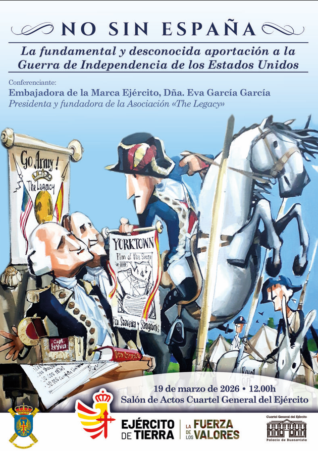 La Asociación The Legacy lanzó en 2019 su proyecto “No sin España” con el fin de reivindicar el decisivo apoyo español a la Guerra de Independencia de las Trece Colonias, coincidiendo con el 240 aniversario de la declaración de guerra de Carlos III. Ese motto sigue latiendo hoy con más fuerza que nunca. La presidenta de The Legacy, embajadora de Marca Ejército, Eva García, presenta en el Palacio de Buenavista una conferencia dedicada a este fascinante episodio de la historia compartida entre España y los Estados Unidos.