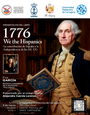 El pasado lunes 9 de marzo de 2026, la sala “Isaac Peral” de la Universidad Politecnica de Cartagena (UPCT) acogió la presentación del libro “1776 We the Hispanics” de la autora Eva Garcia. El acto fue presentado por el Almirante del Arsenal de Cartagena (ALARCART), vicealmirante Alejandro Cuerda Lorenzo representante institucional de la Armada en la Región de Murcia.